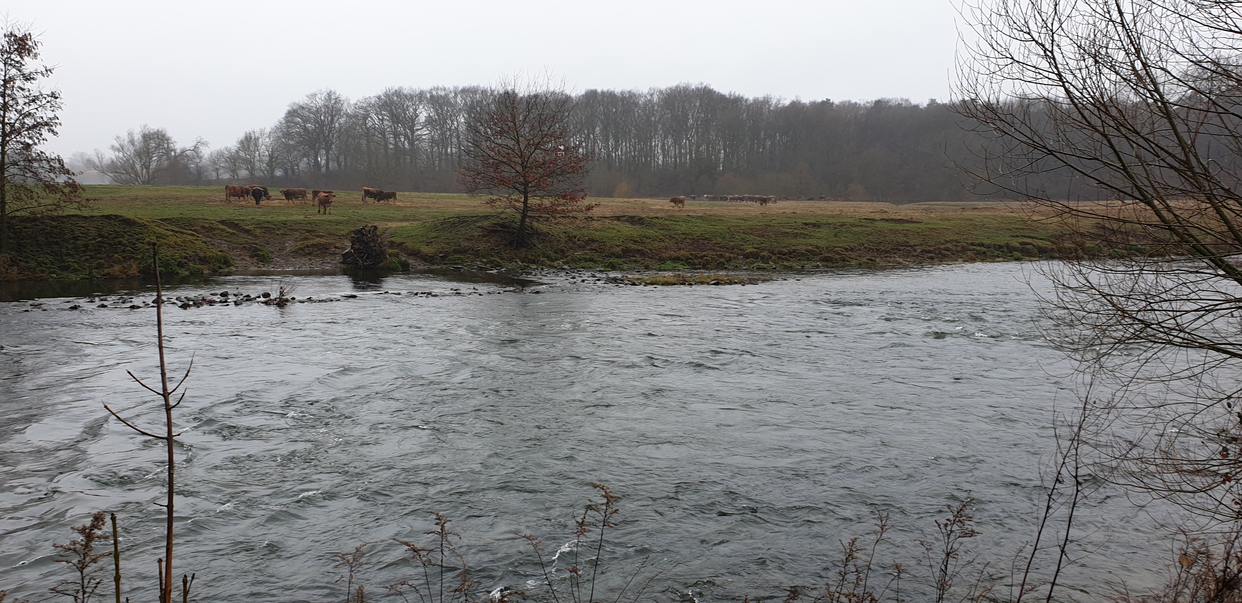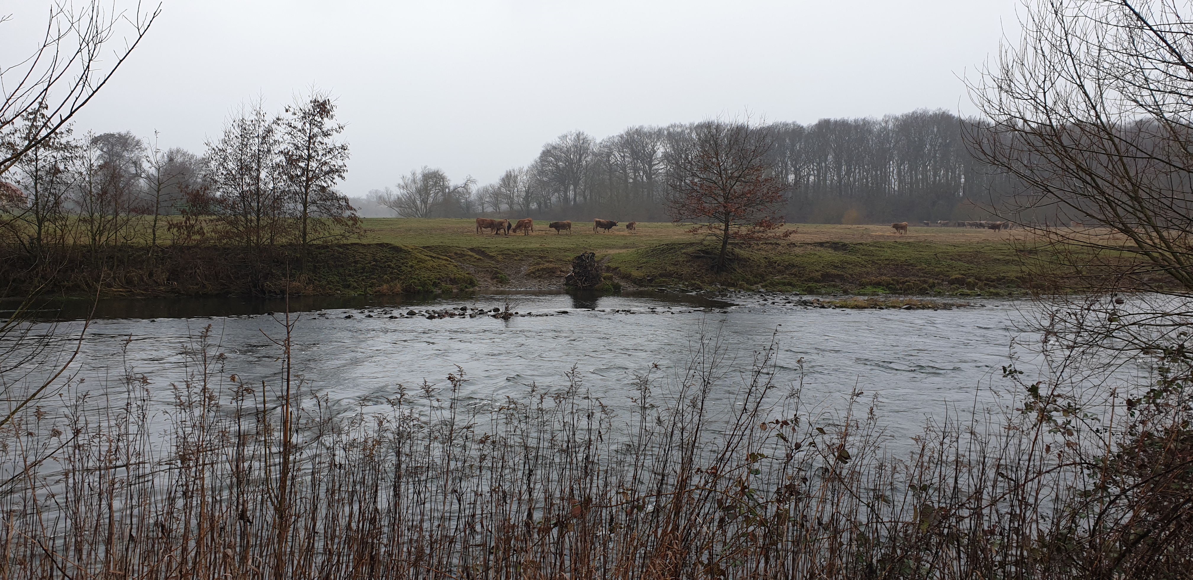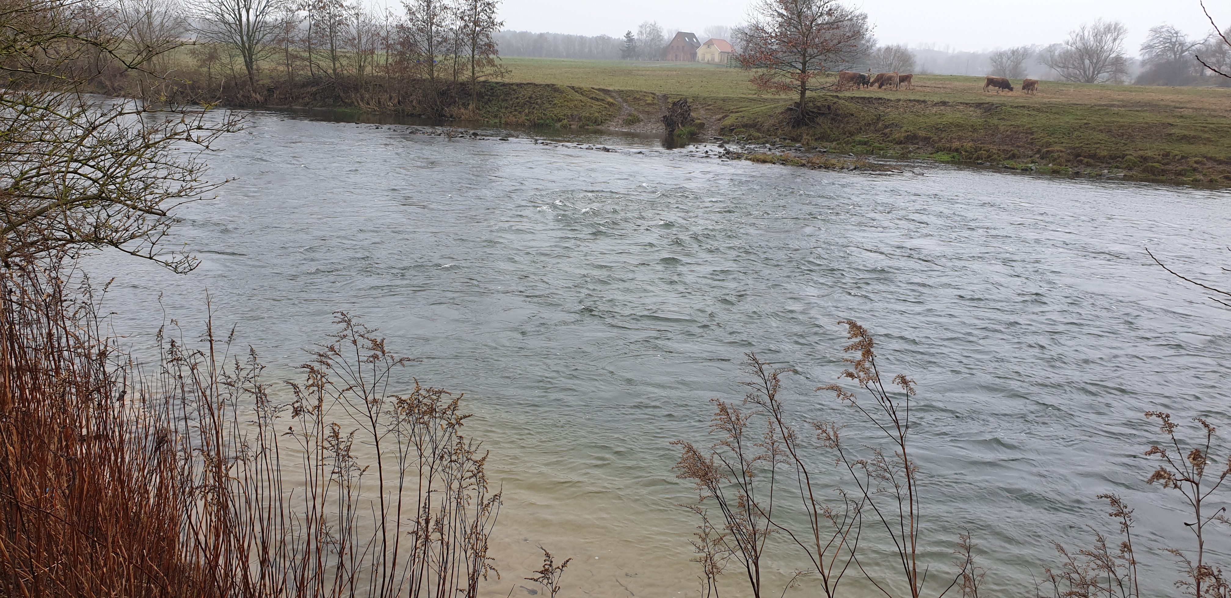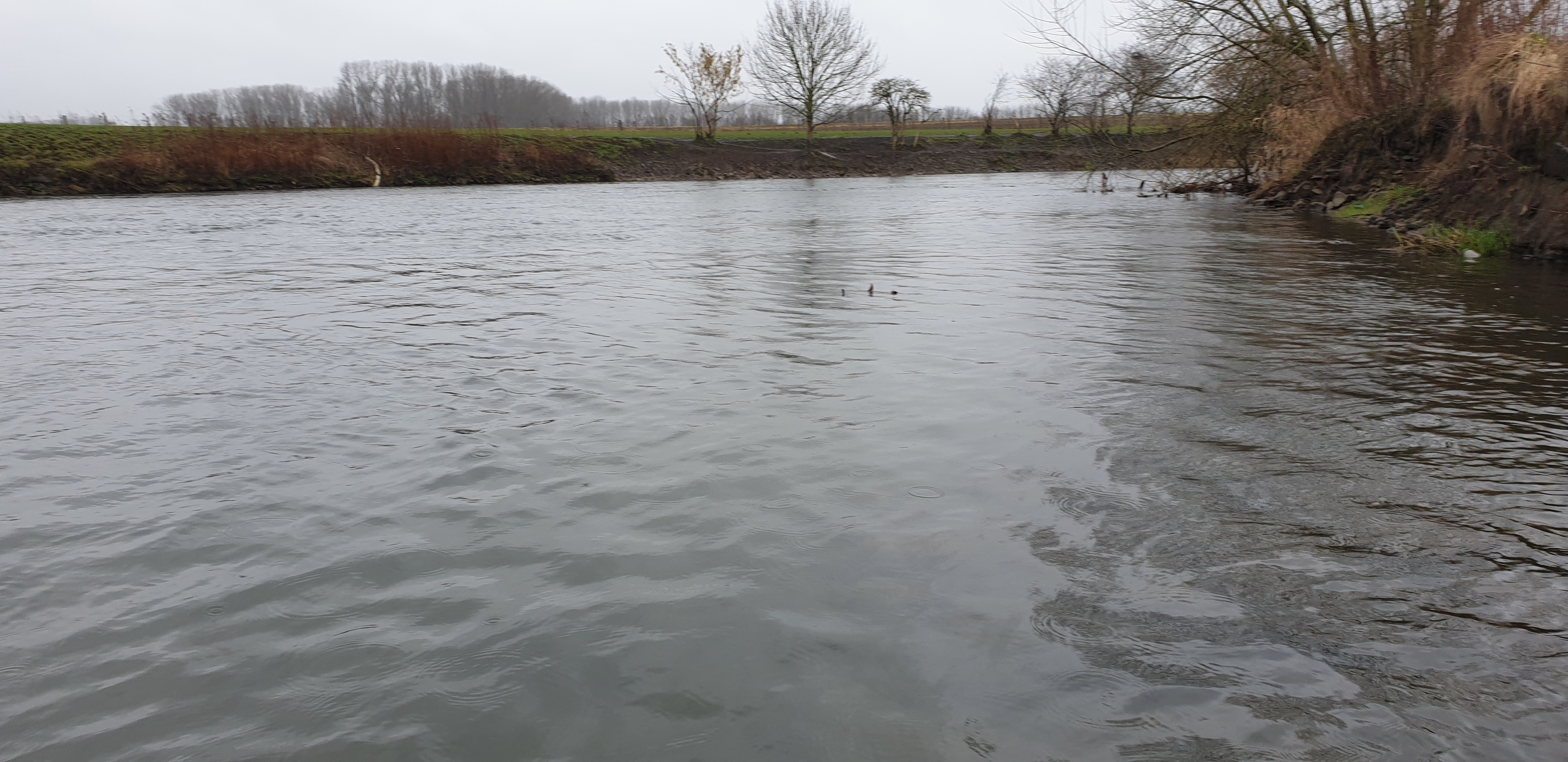 Man sieht es in online Videos immer häufiger, Zweihandruten oder Switch Ruten für den Lachs- und Meerforellenfang. Wäre das nichts für die Karup Å im Sommer? Oder mal die Stunde Fahrt auf sich nehmen und damit am Rhein auf Rapfen angeln? Oder man lernt den Wolfgang kennen, der einem sagt das er seit vielen Jahren schon um die Ecke an der Lippe mit der Zweihand Rute angelt. Von der Barbe bis zur großen Forelle und auch Rapfen wurden da schon gefangen. Und dass man mit der Zweihand Rute kaum Rückraum benötigt, hat an einigen Stellen deutliche Vorteile. Also haben wir Anfang März einen Termin ausgemacht, den Jörg mit eingepackt und sind Richtung Ahsen gefahren. Toll wenn man einen „Local“ dabei hat, der nicht nur die guten Stellen, sondern auch die Parkplätze in der Nähe des Flusses kennt. Der Wasserstand war leider noch immer etwas niedrig, wobei das Durchwaten an einigen Stellen schon recht kniffelig wurde. Ich glaube ich muss doch mal ein paar Euro in einen Watstock investieren. Wolfgang erklärte uns am Wasser wo es wie tief ist, wo man durchlaufen kann, wie in verschiedenen Ecken die Bodenstruktur ist und vieles mehr. Super Infos und man merkte, er kennt die Lippe wirklich wie seine Westentasche. Da ich im Zweihandwerfen noch recht frisch bin und außer ein paar Trockenübungen und ein paar Würfen am Vereinsteich noch keine Erfahrung gesammelt habe, gab es hier und da ein paar Problemchen. Im Nachhinein stellte sich heraus, dass der Skagit Schusskopf doch nicht falsch bemessen war, sondern es an meinem Wurfstil lag. Nach einer Anfangsphase kam ich jedoch klar und legte los. Die größere Reichweite ohne Rückraum zu nutzen macht die Zweihandrute an der Lippe zur besten Wahl! Ähnlich wie an den Auen kann man in die Strömungskanten auf der anderen Uferseite werfen und die Fliege in der Deaddrift präsentieren. Mit einem Single Spey Cast ist die Fliege nach vollendeter Drift auch ruck zuck wieder auf der anderen Uferseite. Gefangen wurde an diesem Tag leider nichts. Im Grunde war es auch eher unwahrscheinlich, Wasserstand, Temperatur und Jahreszeit waren alles andere als Fanggaranten. Aber Fisch war auch nicht das oberste Ziel. Der gemeinsame Ausflug machte wie erwartet einen riesen Spaß, ich habe sehr viel über die Lippe und das Zweihandwerfen gelernt und die neu renaturierten Bereiche sind für einen Gewässerwart eine Augenweide. Toll was der Landesfischereiverband, die Bezirksregierung sowie Städte und Kommunen da im Rahmen der WRRL auf die Beine gestellt haben. Überschwemmungsflächen, Flachwasserzonen, Totholz im Fluss, alles vorhanden. Alles in allem eine Tour die bei etwas besseren Wetterbedingungen auf jeden Fall nach Wiederholung schreit!